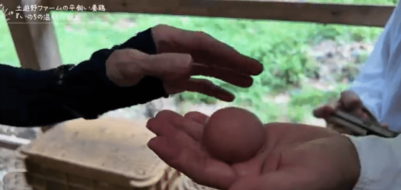 しかし、土遊野ファームで産卵箱からそっと取り上げたばかりの卵は、手のひらの上で、予想をはるかに超える熱を帯びていました。
