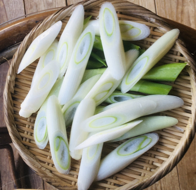 群馬県の下仁田地域で江戸時代から栽培されてきた、ひじょうに太い一本ねぎですが、火を通すと甘くトロ〜リと柔らかくなり、かつては殿様に献上され「殿様ネギ」とも呼ばれていました。これからの季節は葉の部分が寒さで枯れるため切り落とし、見た目は悪いかもですが、味はどんどん甘く柔らかくなってきます。