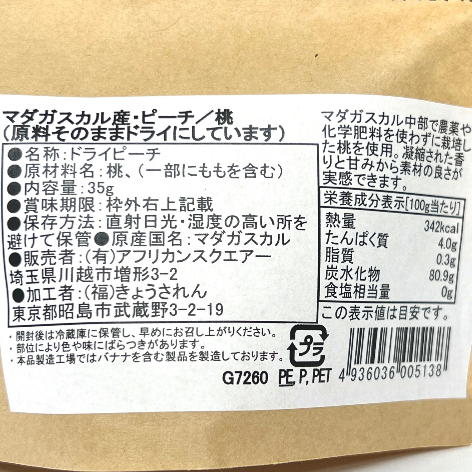 アフリカンテーブル マダガスカル産ドライピーチ/桃